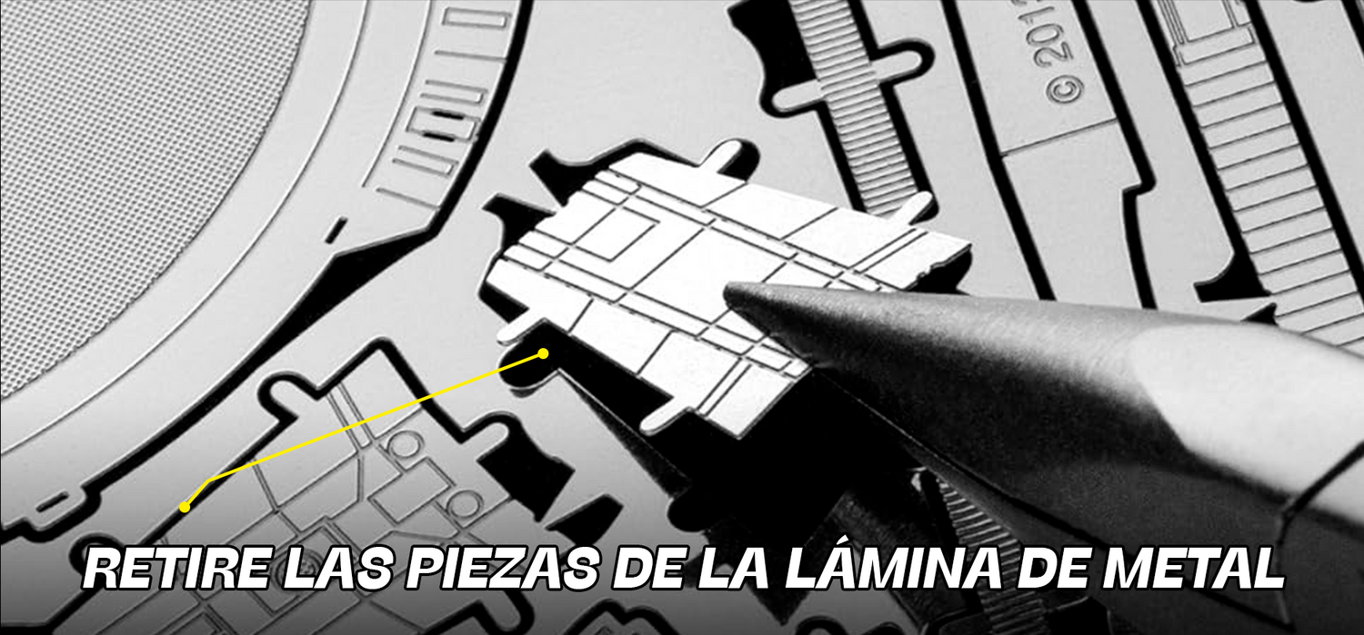 Sólo tienes que seguir las instrucciones y extraer las piezas con pinzas, doblar las pestañas y conectar las uniones